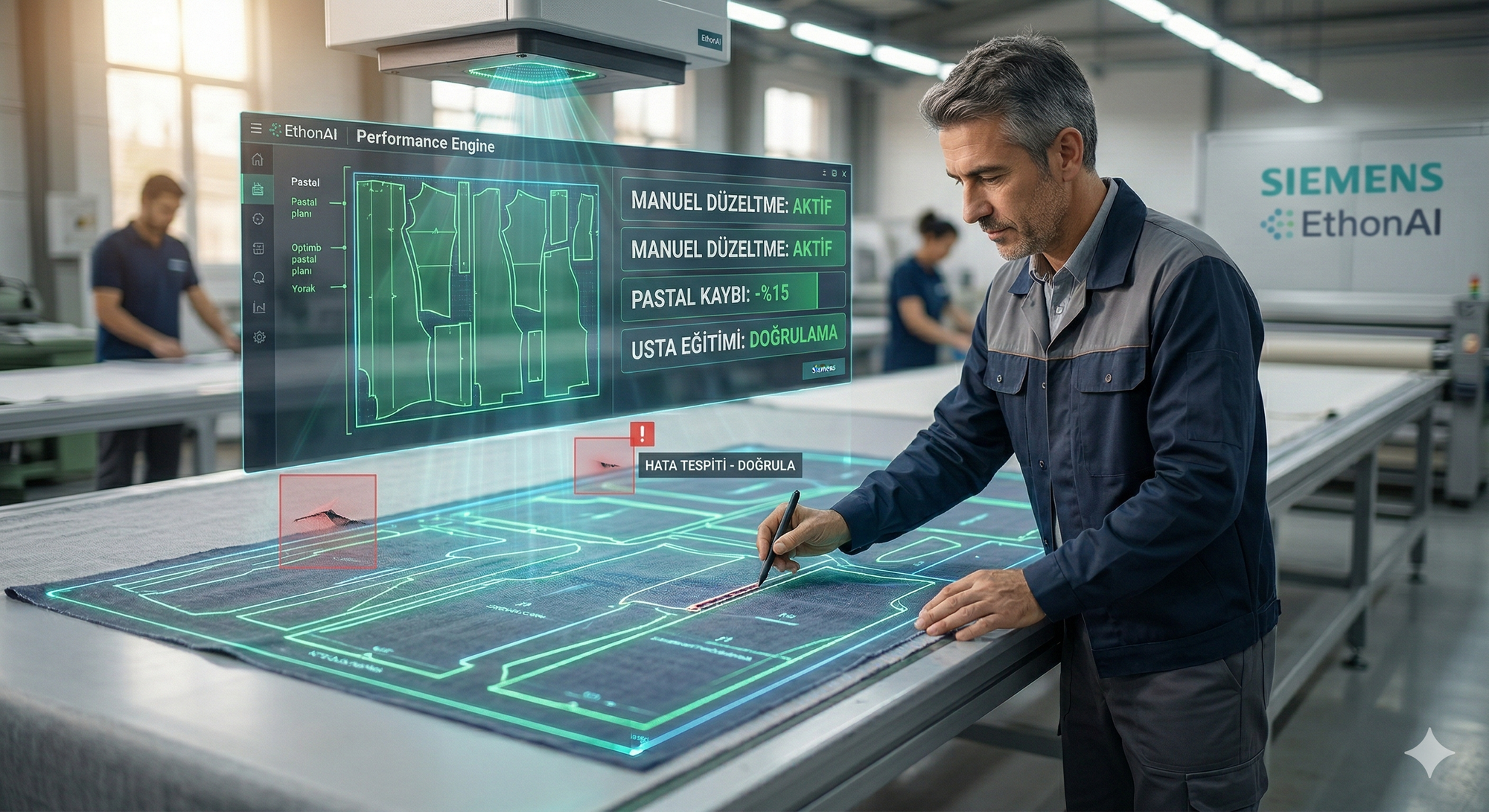 Bu sistemin sadece Almanya’daki fabrikalarda istasyon başına 30.000€ ile 100.000€ arasında tasarruf sağladığını biliyoruz. Bunu kendi fabrikanız için düşünün; ihracata giden bir partinin kumaş hatası yüzünden geri dönmesinin maliyetini daha işin başında sıfırladığınızı hayal edin. Bu teknoloji, kumaşın her milimetresini takip eden ve asla yorulmayan dijital bir kalite kontrol ustası.